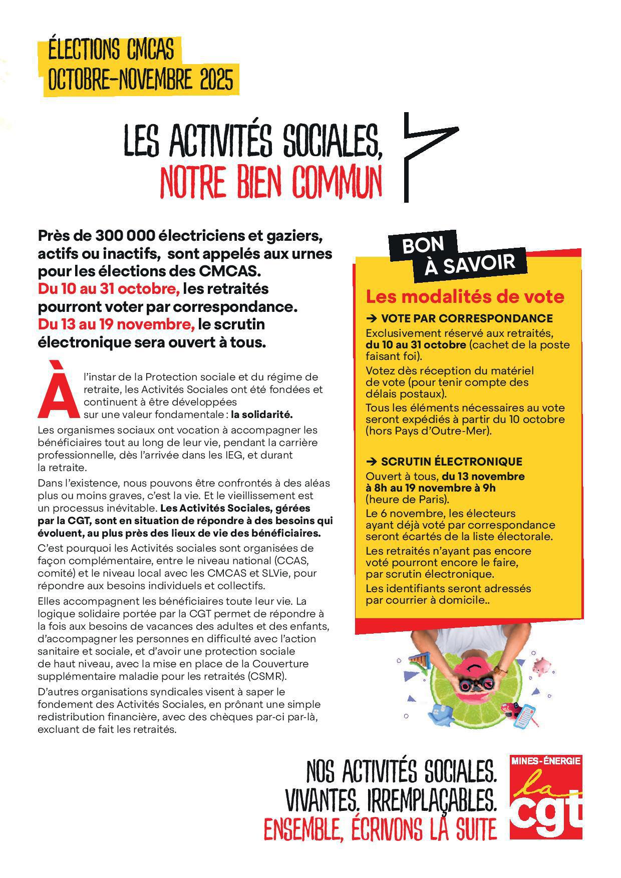 [Election CMCAS] : Les activités sociales, notre bien commun