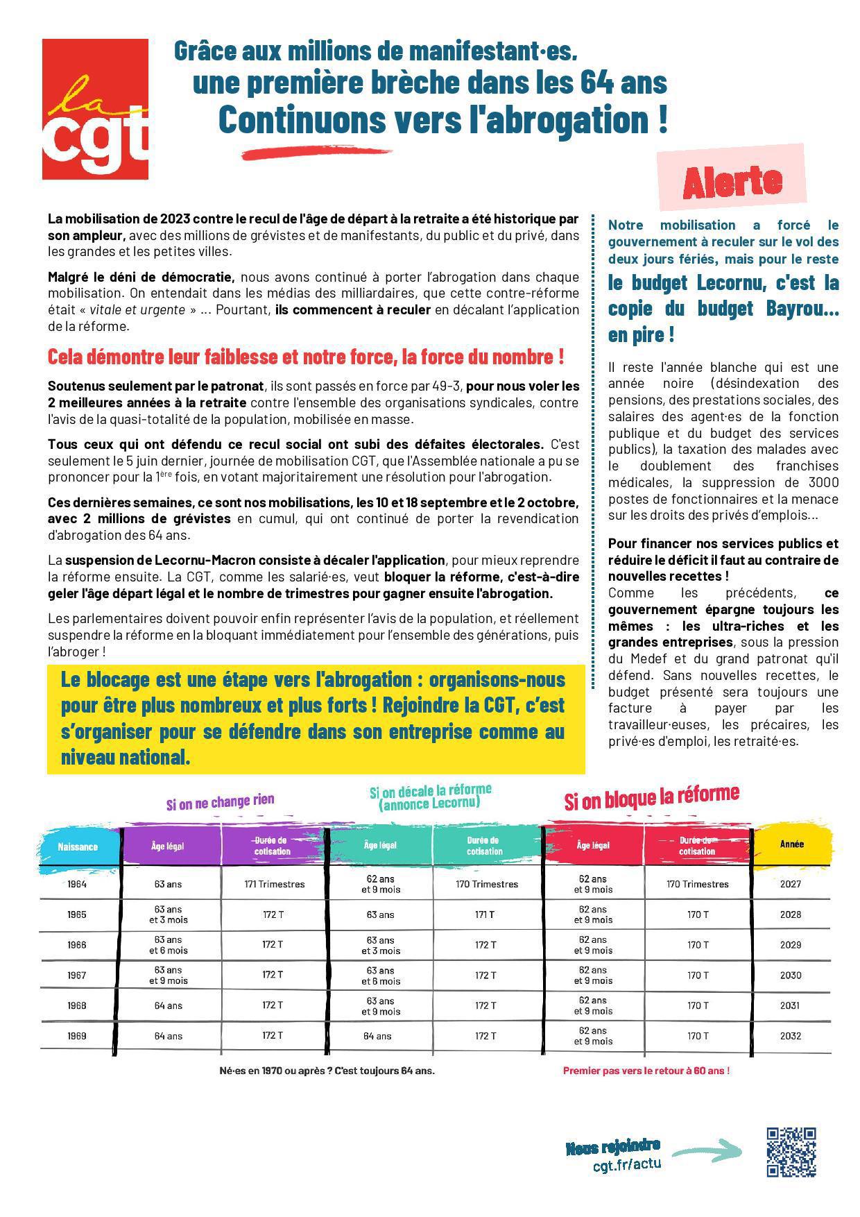 Grâce aux millions de manifestant-es une première brèche dans les 64 ans. Continuons vers l'abrogation !