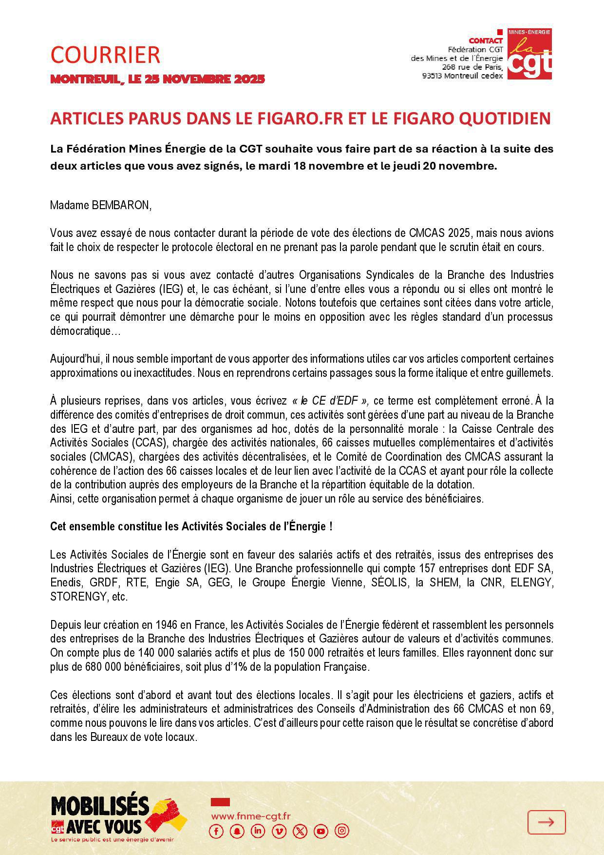 Courrier : Réponse aux articles parus dans le figaro.fr et le figaro quotidien